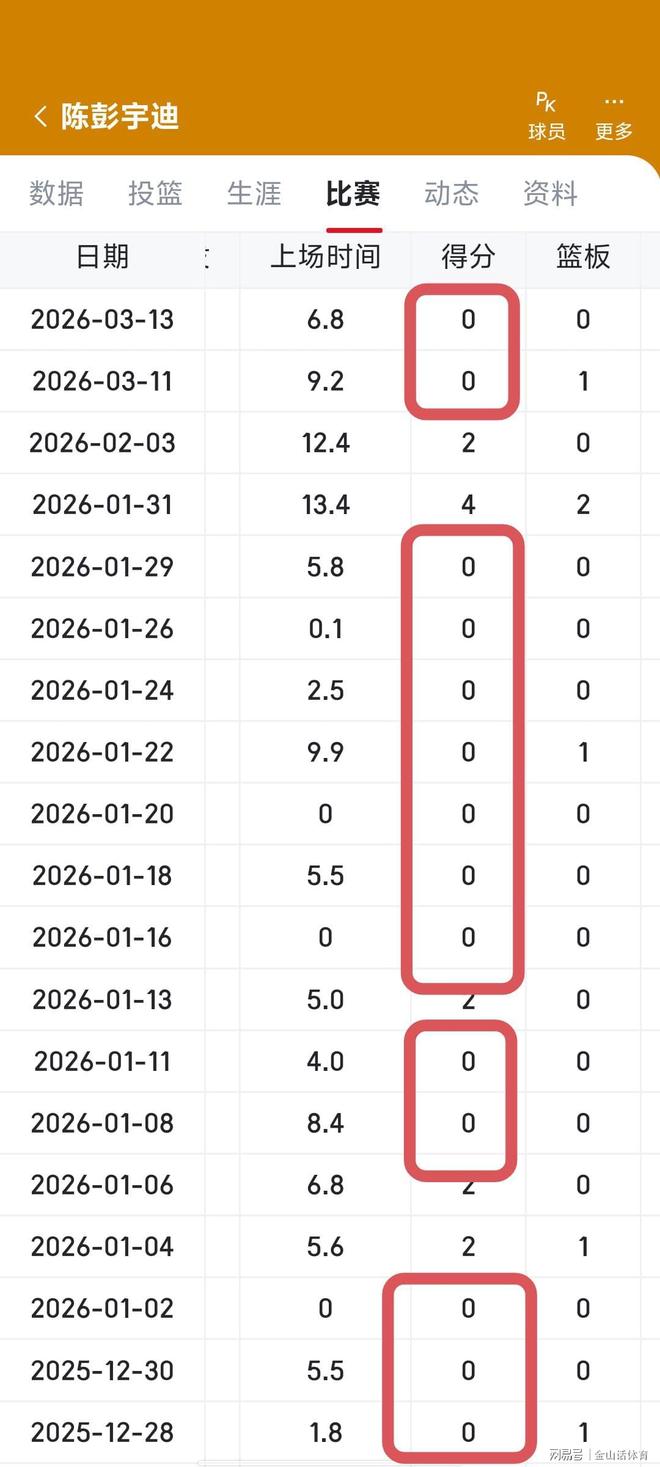 值得一提的是,輸給遼寧隊一役,山西隊後衛陳彭宇迪出場7分鍾,數據為0分0板1助1失誤,外加5次犯滿畢業。而這樣的表現,隻不過是陳彭宇迪整個賽季,糟糕表現的一個縮影。這個賽季,陳彭宇迪共代表球隊出戰了20場比賽,其中,1場比賽為0分。