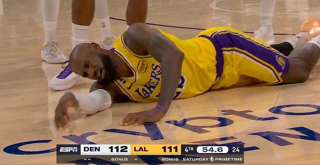 最後1分鍾,41歲的老詹拚命了,一個魚躍龍門式飛撲,撲到了籃球