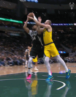 值得一提的是,字母哥因為意外受傷,一直就在前場沒有參與退防,步行者進攻失誤後,雄鹿一個長傳正好給到了前場的字母哥。