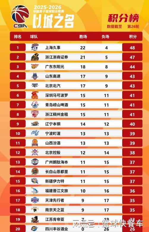 附:CBA積分榜最新排名