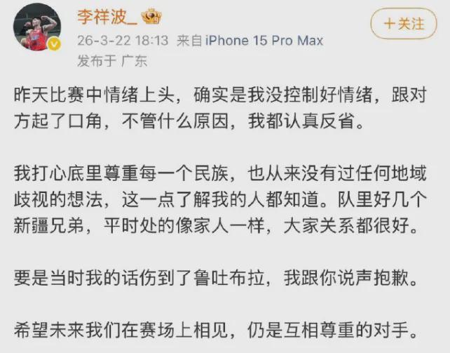 CBA官方宣布:李祥波停賽4場+罰款10萬,魯吐布拉停賽1場+罰款5萬。