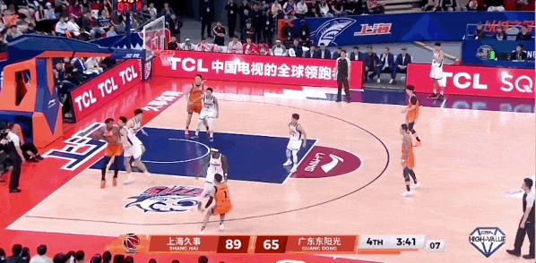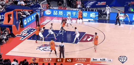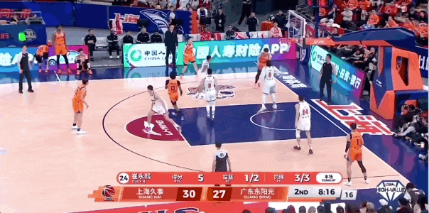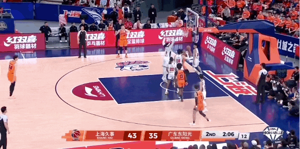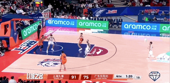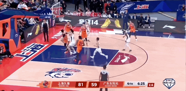 劉錚、李弘權相繼命中三分球,上海男籃將分差擴大到20分。