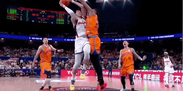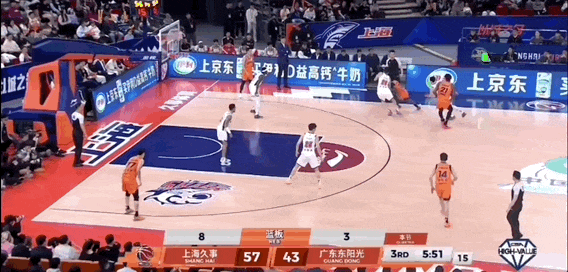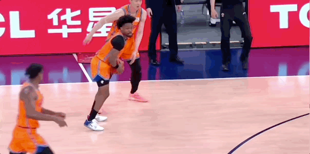 薩姆納分球被斷,張鎮麟帶反擊,直麵薩姆納,出手將球放進籃筐,打成and one!上海男籃進入狀態,反超比分!
