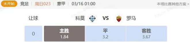 本場比賽行業數據給了主隊讓0.25的支撐麵,後市市場信心主流已經有所提升主讓0.5,符合雙方的一個狀態和陣容對比。羅馬上次客場取勝還是在一月底,而且對手還是都靈和萊切兩隊保級隊,遇到強隊逼平那不勒斯已經是他們的天花板。羅馬現在不僅進攻無力,防守端更是場場 失球,攻防都低迷的情況下根本無法抵擋意甲新貴的衝擊,這場比賽看好科莫取勝。