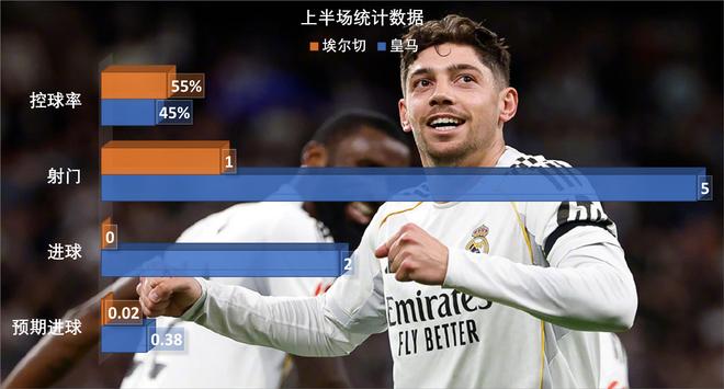 從阿韋羅亞的執教風格看,他的球隊有很重的穆裏尼奧痕跡,與埃爾切的西甲聯賽上半場,皇馬控球率僅有45%,不過對手隻獲得1次射門,預期進球才0.02。