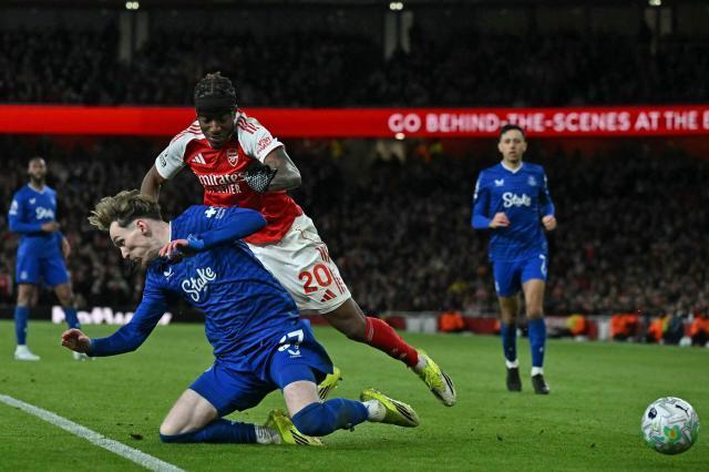 開場前20分鍾,客場出戰的埃弗頓就曾兩次讓主場球迷心驚肉跳,一次是拉亞攔截高空球沒撲遠,麥克尼爾的跟進補射讓卡拉菲奧裏演了一出“蠍子擺尾”堵槍眼。隨後麥克尼爾又一腳禁區外兜射砸在了立柱上,看得場邊的埃弗頓主帥莫耶斯也是抱頭歎息。誠然,埃弗頓若先進球,阿森納倒也未必不能贏——哈弗茨在上半場就有過一次絕佳機會,隻是禁區內被絆倒卻沒有獲得點球。慢鏡顯示,對方後衛與其上半身的拉扯確實不嚴重,但邁克爾·基恩的腳肯定踩到了哈弗茨的後跟,卻不知為何當值主裁和VAR都沒有判處極刑。