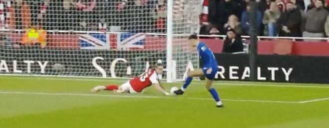 當時埃弗頓從左路發動進攻,將球送入禁區後,前鋒德懷特-麥克尼爾迎球打出一腳力量十足的射門。麵對這腳射門,阿森納門將大衛-拉亞甚至還沒來得及完全移動到位,皮球看起來很可能會直接飛入球門。