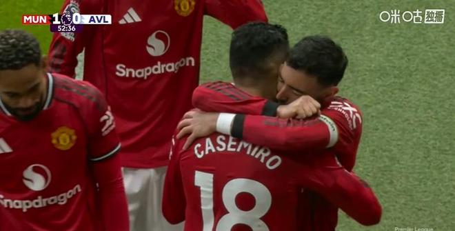 第53分鍾,姆伯莫禁區內左側小角度打門被大馬丁飛身撲出底線,B費前場右側開出角球,卡塞米羅迷蹤步甩開防守,閃到前點甩頭攻門將球頂進維拉大門,曼聯主場1-0取得領先。這是胖虎本賽季第七粒英超聯賽進球。