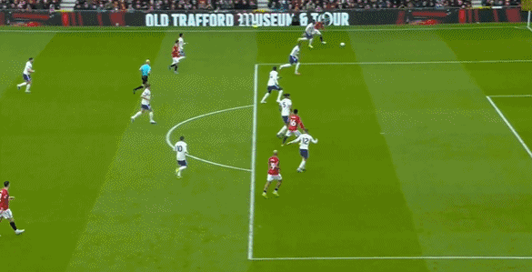 第71分鍾,曼聯球員達洛特後場推進策動攻勢,B費左路送出手術刀直塞,庫尼亞反越位單刀推射,再度打穿馬丁內斯的十指關,曼聯再次領先,2-1!