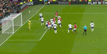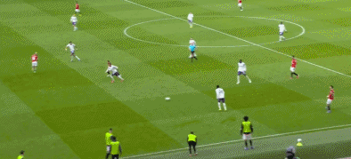 第38分鍾,曼聯球員B費禁區前沿過頂長傳,達洛特右路插上,停球之後起腳勁射,皮球高出橫梁。