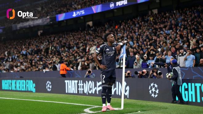 此役客場對陣曼城,維尼修斯在上半場主罰點球破門。